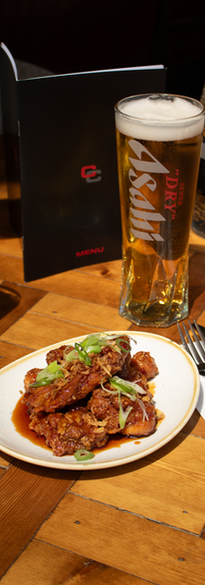 At two of our venues we have a full restaurant on site. We have burgers, wings, sandwiches, cocktails, beer and much more.